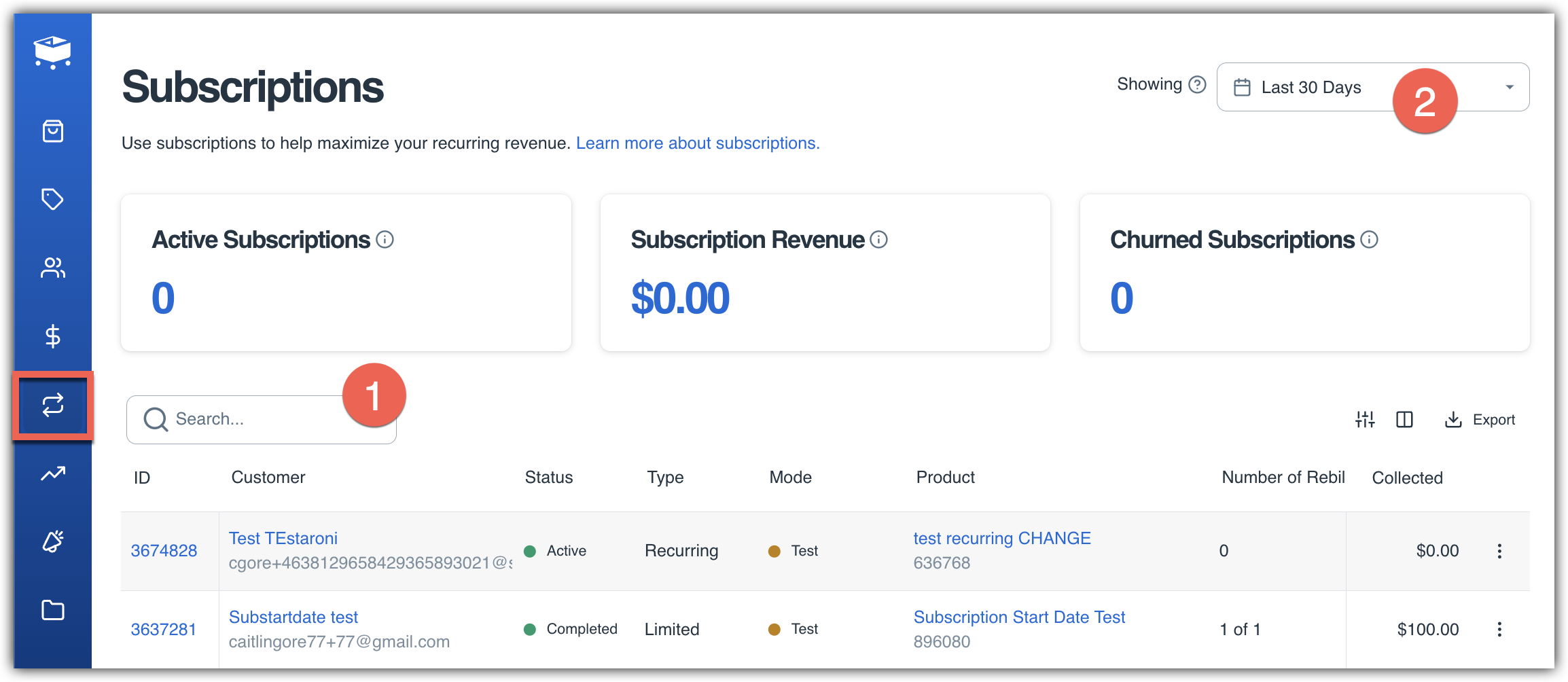 - Search for the subscription by entering a Name, Email Address, or Subscription ID into the search field.