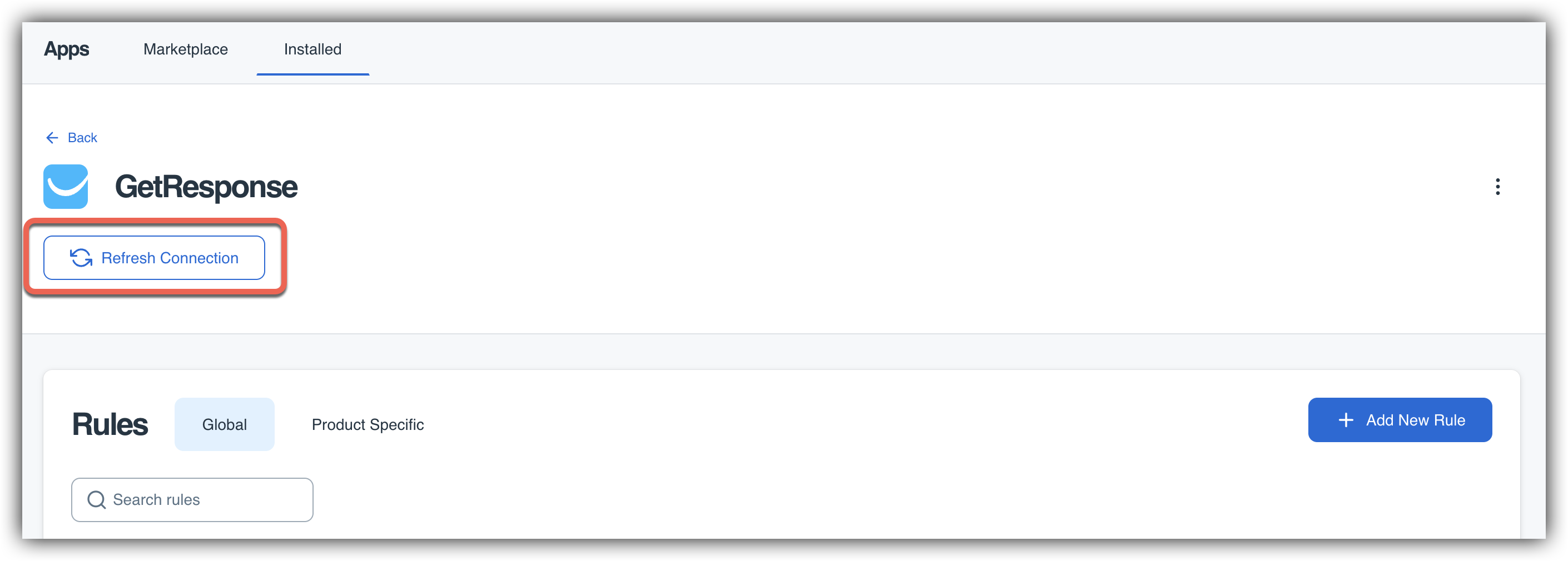 From within the GetResponse connection in the App Marketplace, click on the + Add New Rule button.
